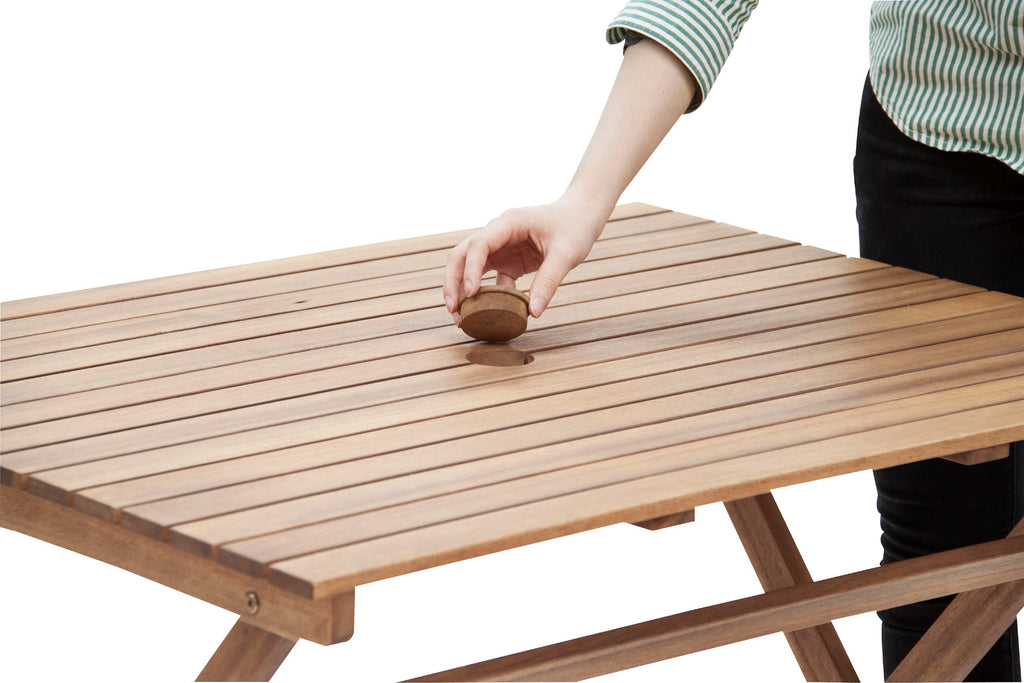 さらに本商品は、天板中央にパラソル用の穴を設けている点が大きな特徴です。