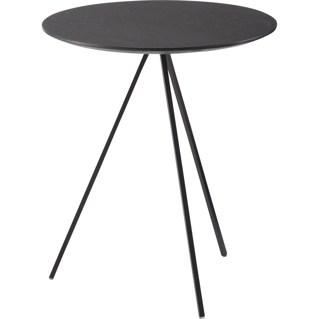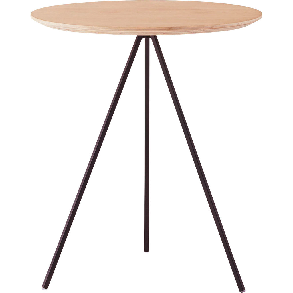 オーク材の温かみある丸天板と、3本のスリムなアイアン脚が生み出す、軽やかでミニマルなシルエットが最大の魅力のサイドテーブルです。