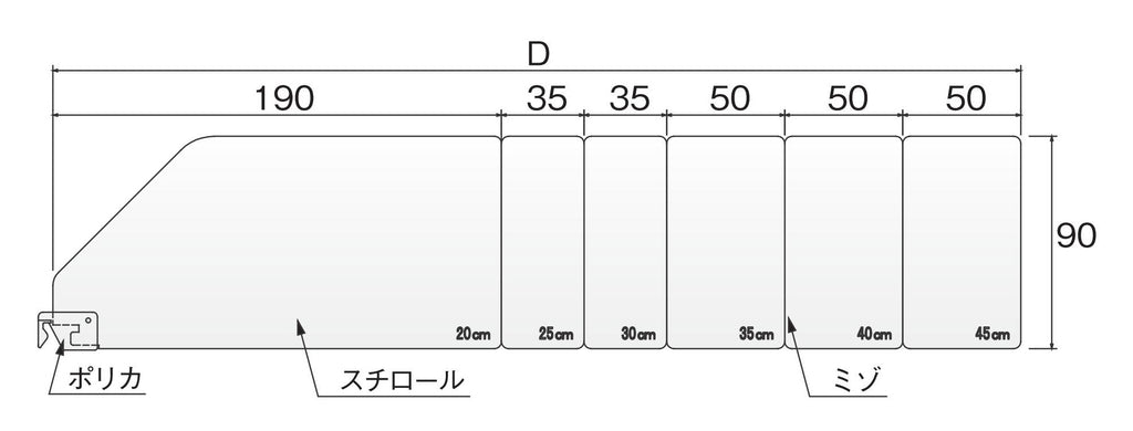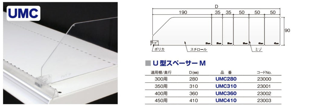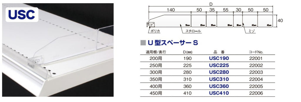 | 品番 | 適用棚/奥行 | 奥行(mm) | 高さ(mm) |